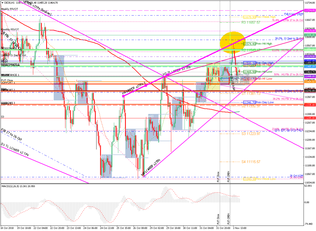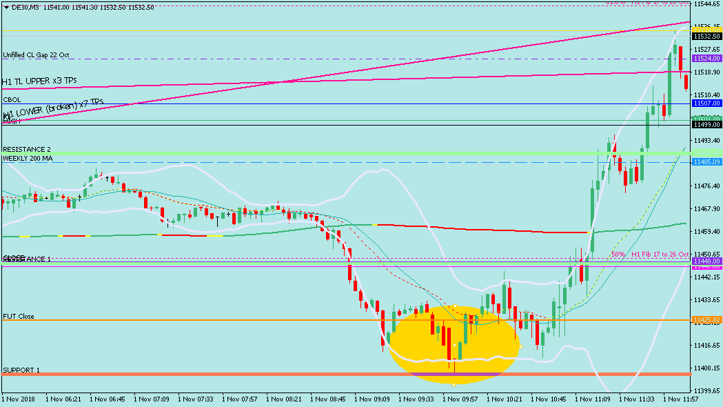 - There was confluence just above 500 with an unfilled gap from 22 Oct at 11524, a TL and CBOL at 11507.