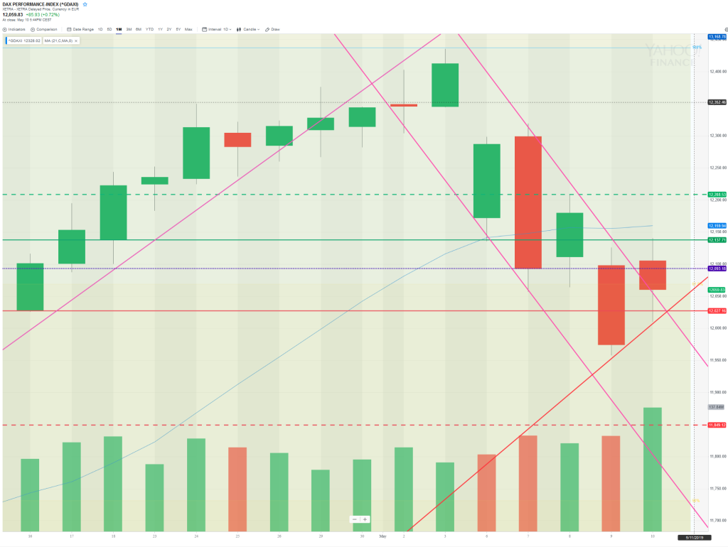 14 May: Wkly S1 provides early support then price breaks up through downward channel