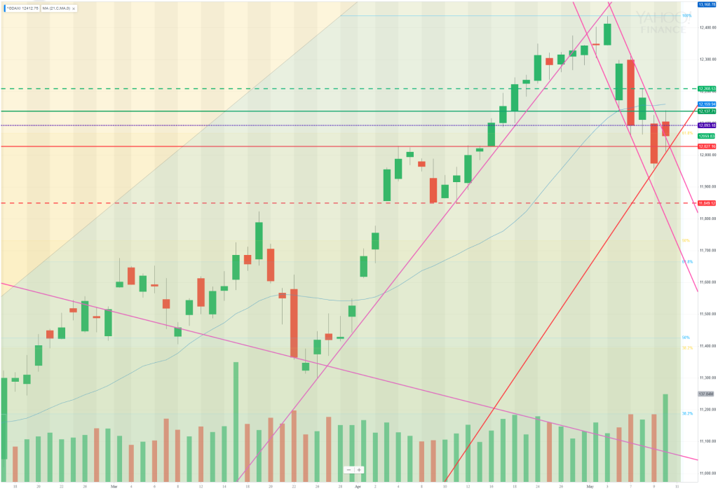Scenario 1: market sees a fast bounce off the cash gap close but then falls through the supporting TL and then trends down to 11956 and beyond – no buying power at the gap and it made it all the way to the cash daily chart 50MAScenario 2: early strength and then ranges up to 12141, with a significant pullback at 12111, then continues to range between 12132 and 12027Scenario 3: fills the cash gap early on and then trends up to R2/50%fib/fut close around 12170-90 and reverses there