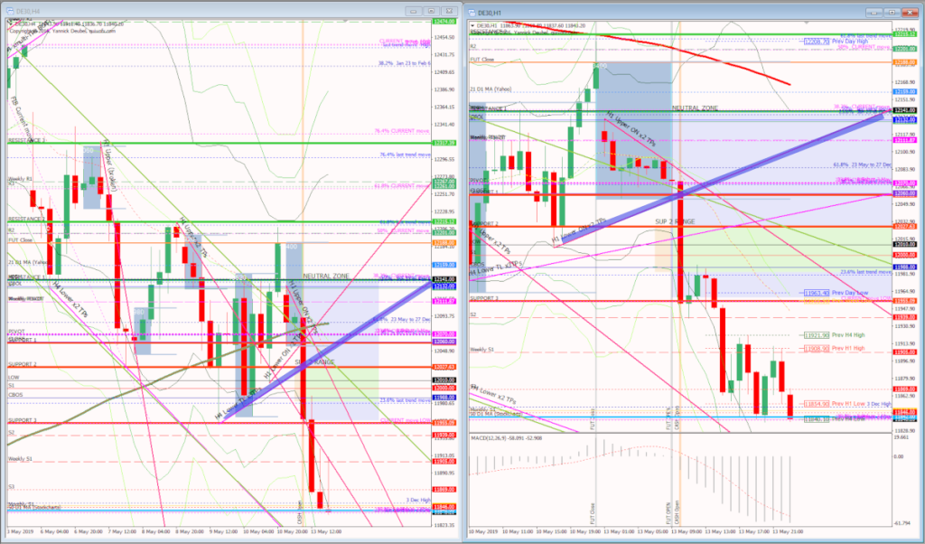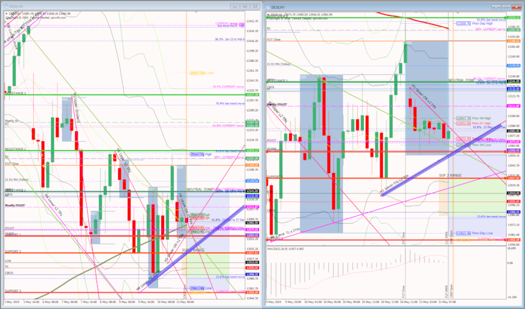 H4 and H1 charts from the morning futures session