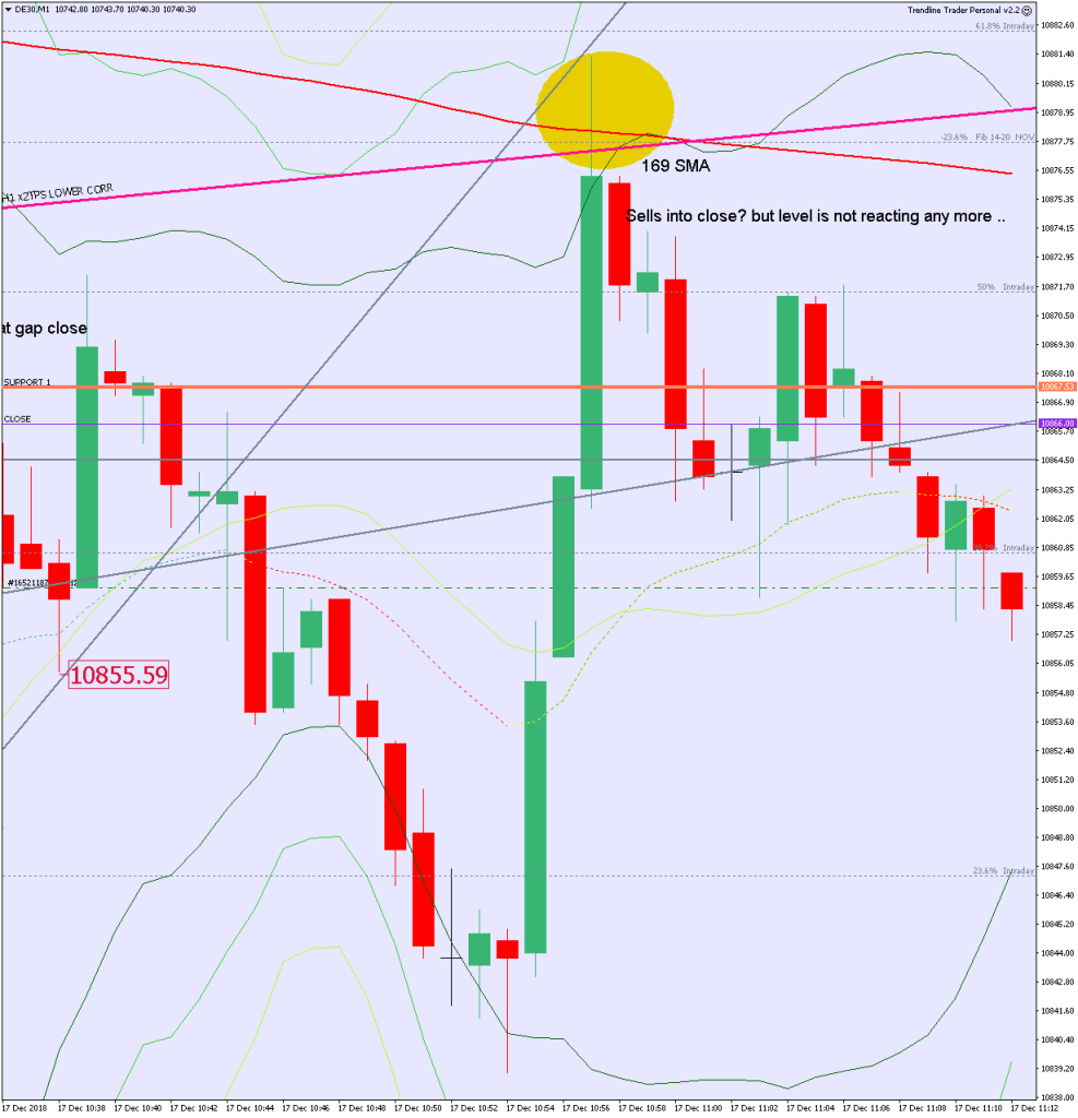 This was the sell at a retest of the underside of the H1 TL, where the 169 on the M1 and M3 converged. A similar trade set up later in the day just before the 200pt reversal.