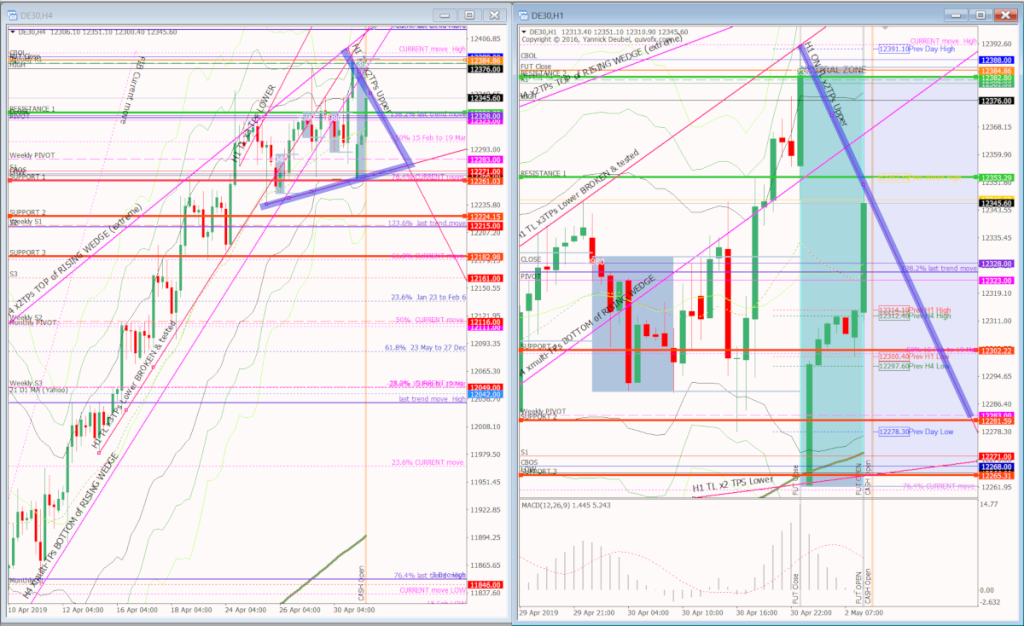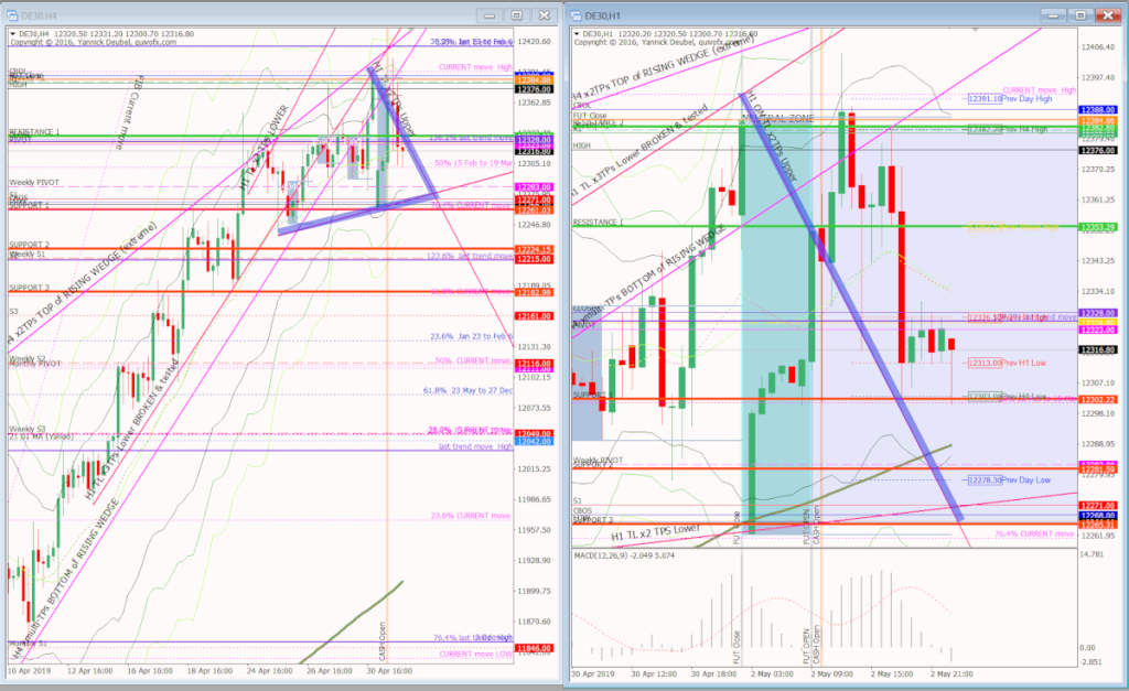 H4 and H1 charts from the morning futures session