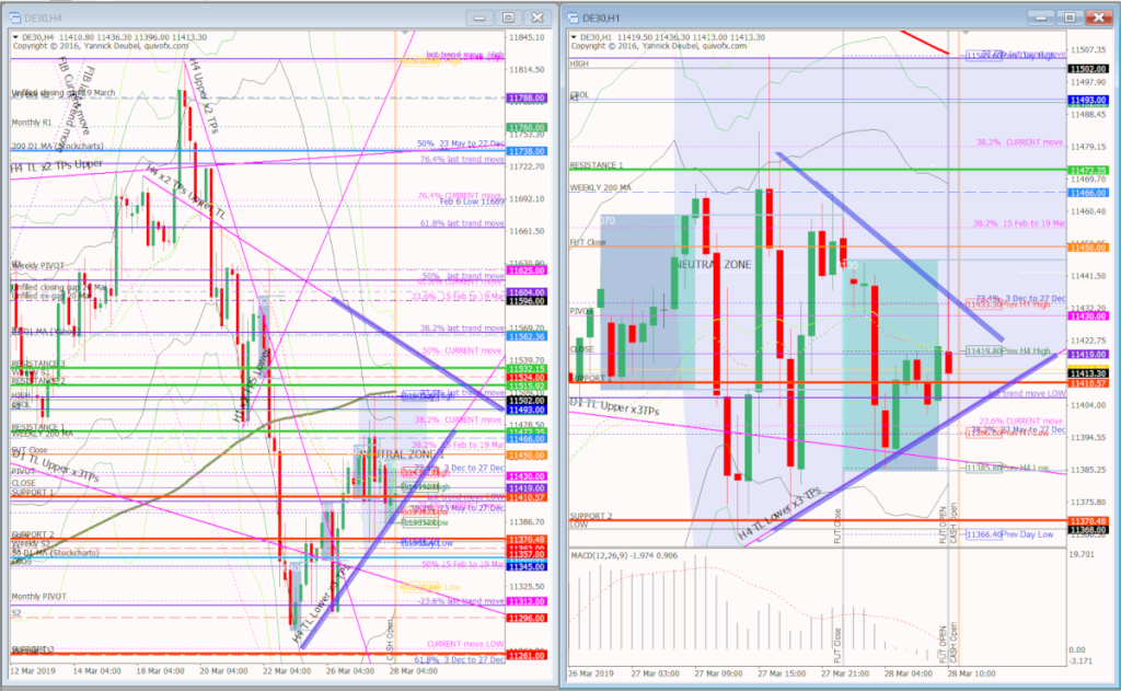 Scenario 1: climbs to 11500 and reverses, then ranges all day and stay above the H1 TL SPOT ONScenario 2: breaks H1 TL early on and then sees declines or goes back a few retests before making its move.Scenario 3: continues range bound and/or makes false breaks either side of the Neutral Zone