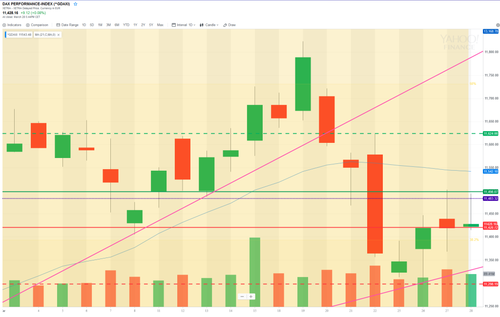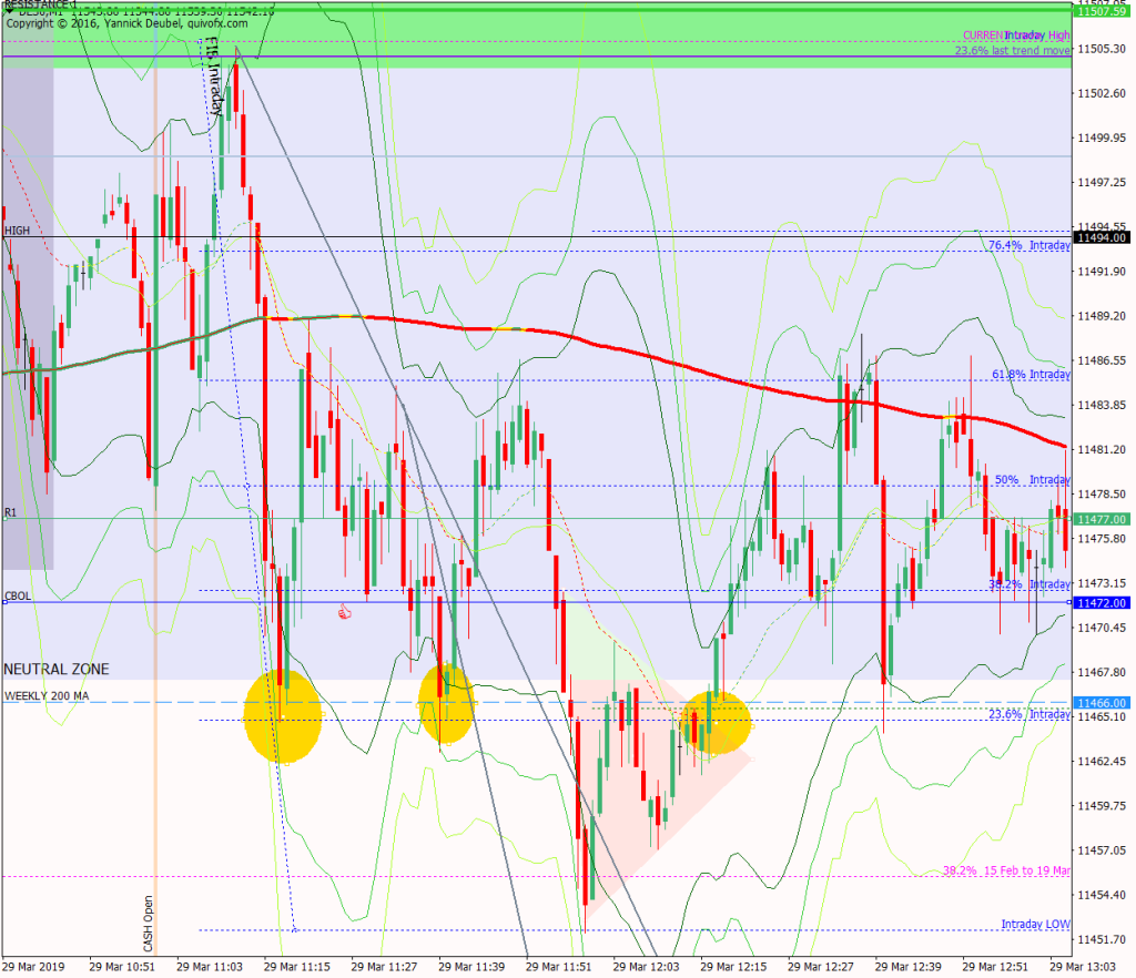 - the 11500 level was restested in the first few minutes and from there the market made a swift reversal down to the weekly 200MA