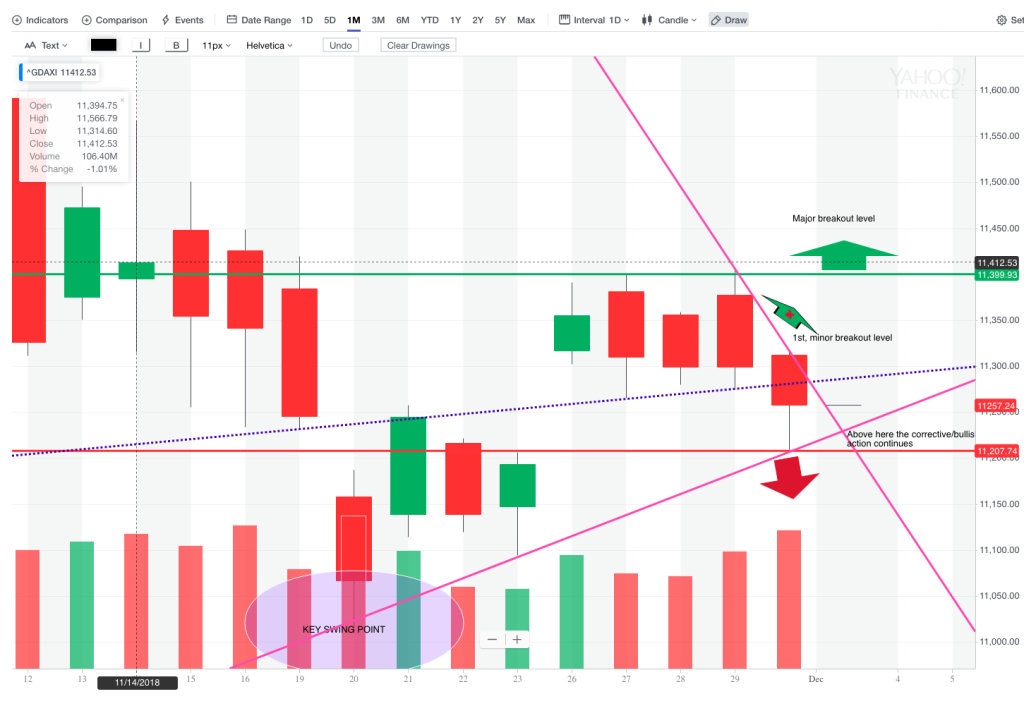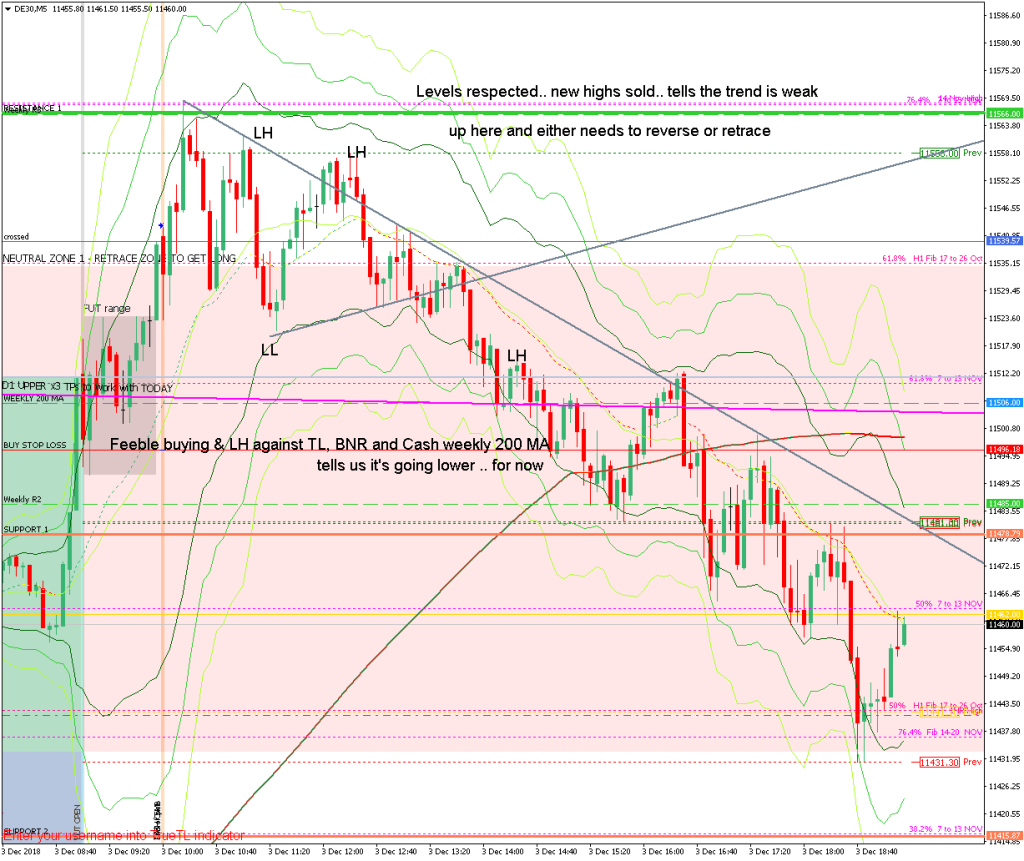 From the H4 and H1 chart which show the ON action, you can see that both resistance levels have been broken. The market is now at a critical point: the D1 upper TL; so the question is whether it will motor straight through that and move towards 11600, or whether we see limited further gains today because (1) the market want to digest the ON move and (2) it wants to fill at least part of the gap left ON.