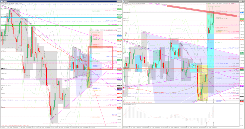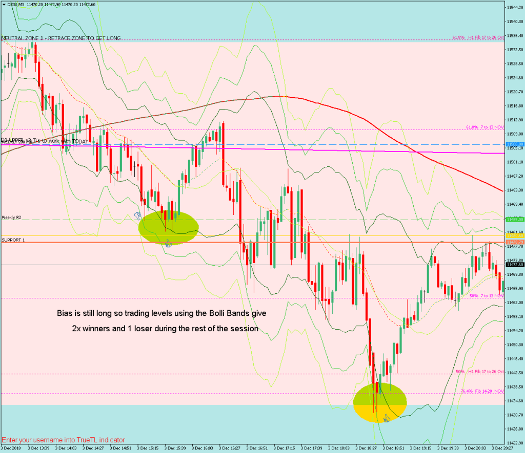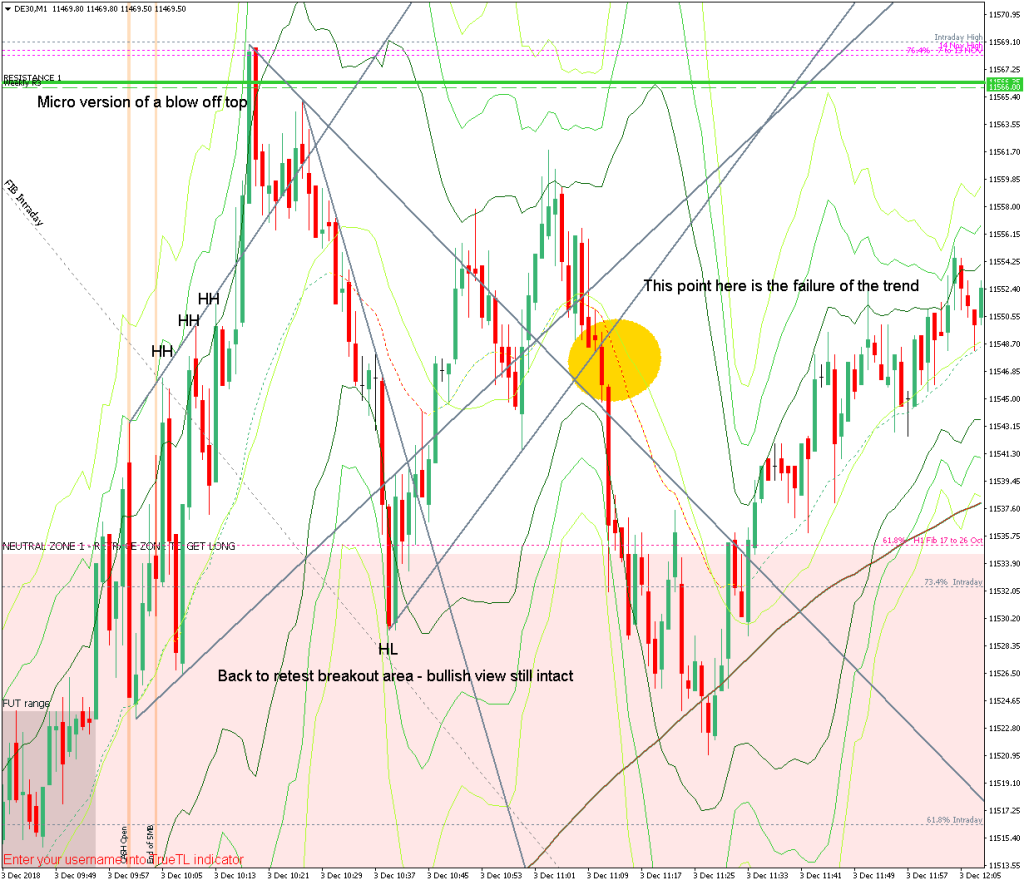 How effective was my Neutral Zone? It was not possible to use a normal neutral zone a the market had gapped up into new territory so instead I drew a Neutral Zone to trade retraces (pink , which covered the ON range. The breakout of the range saw and once te market was back inside the zone it was safe to short.