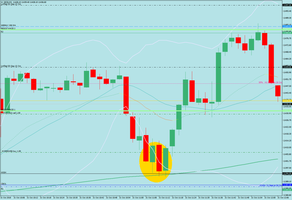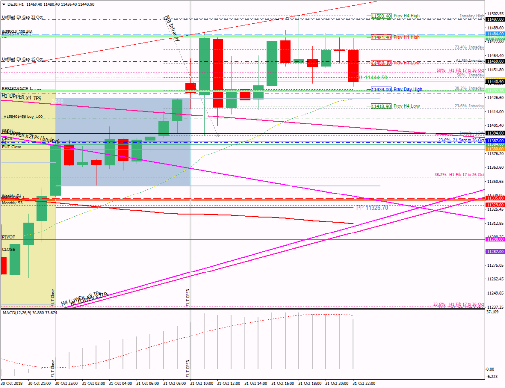 - The buy idea was supported by the unfilled gap at 11497 from 22 October; the market spent the afternoon stair stepping its way up to that before reversing
