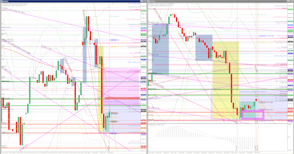 - The higher high during the afternoon was a fake out – although the level made perfect sense as it was Nov 13 low – and you would need to re-enter any stopped shorts here.