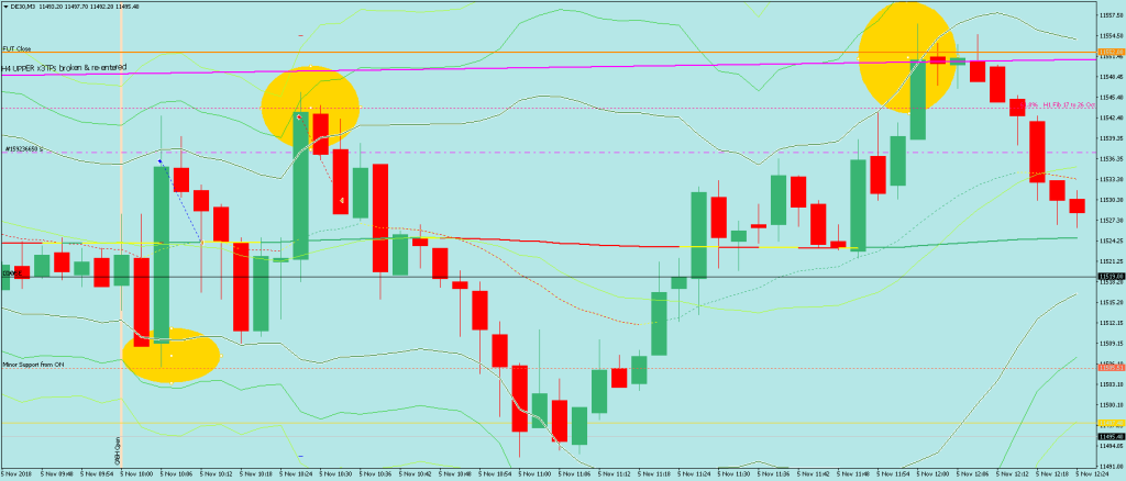 On the bullish side, I wanted to see a break of the ON range – which was also the futures close – on the bullish side. Both of these events happened (the long break was only by a couple of pips) but the market did absolutely nothing with them – as you can see from the H1 chart here: