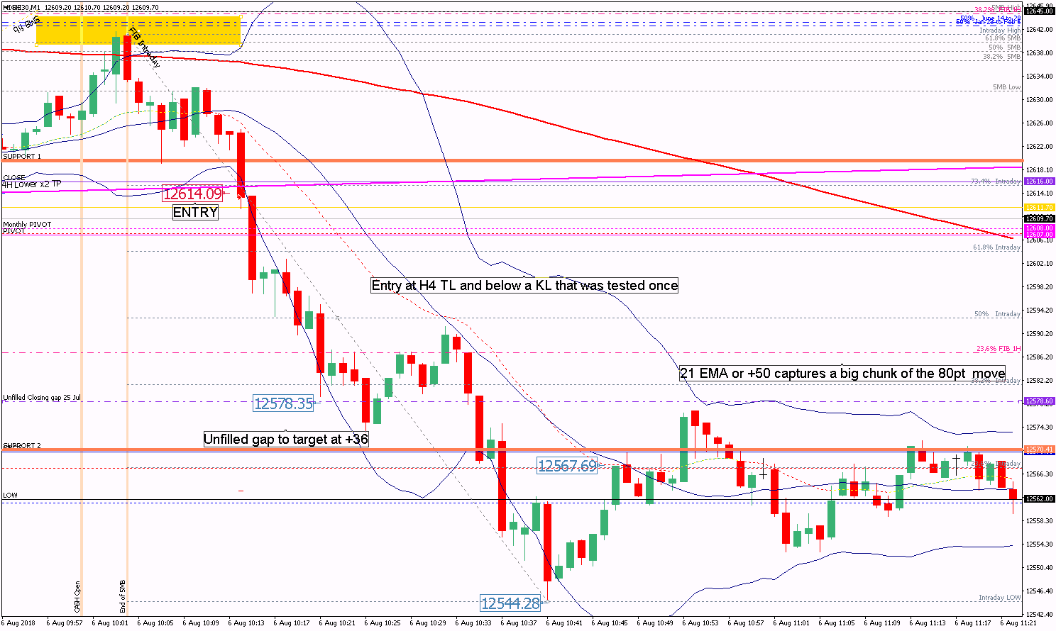 6 Aug – H4 TL break traded on M1 for +70