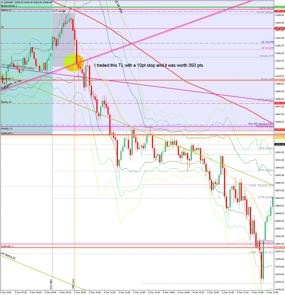 The short of the TL that supported the ON corrective move – this captured the vast majority of the day’s action with a 10pt SL.