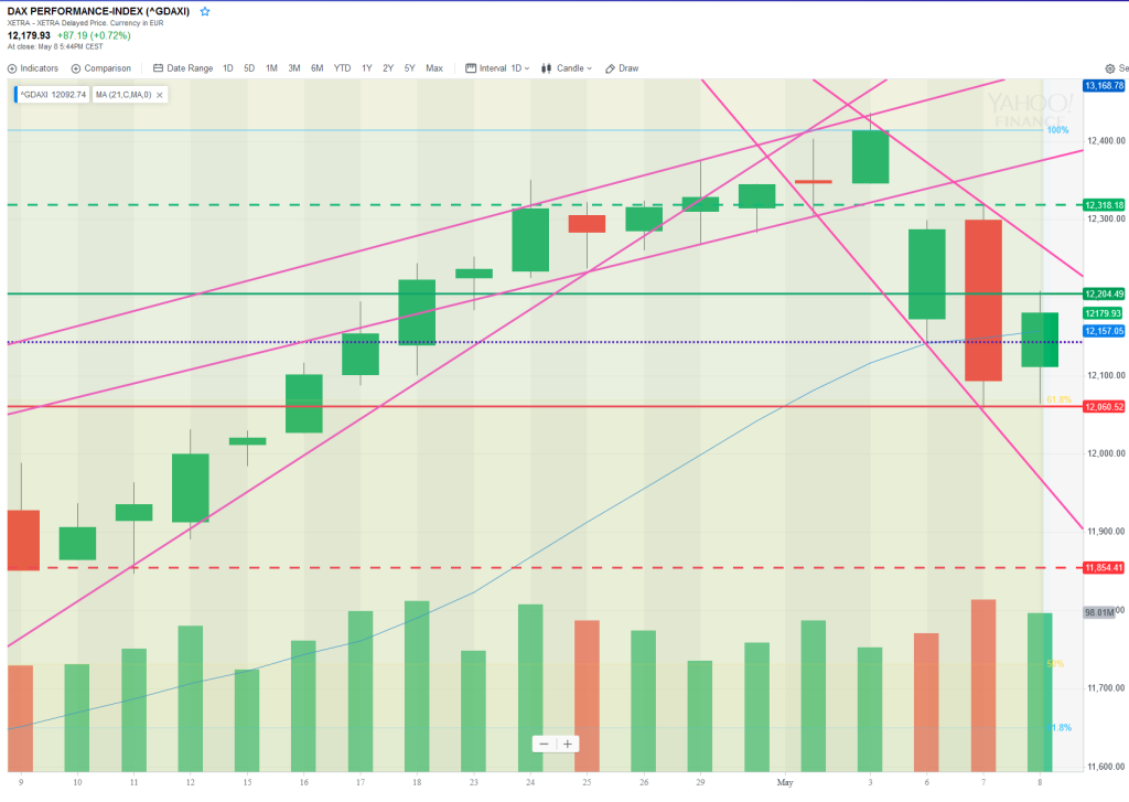 Futures opened at 12142, leaving a gap of -53pts against the cash close and -38 against the futures close. The futures open was within yesterday’s range so there are no ex-gaps.