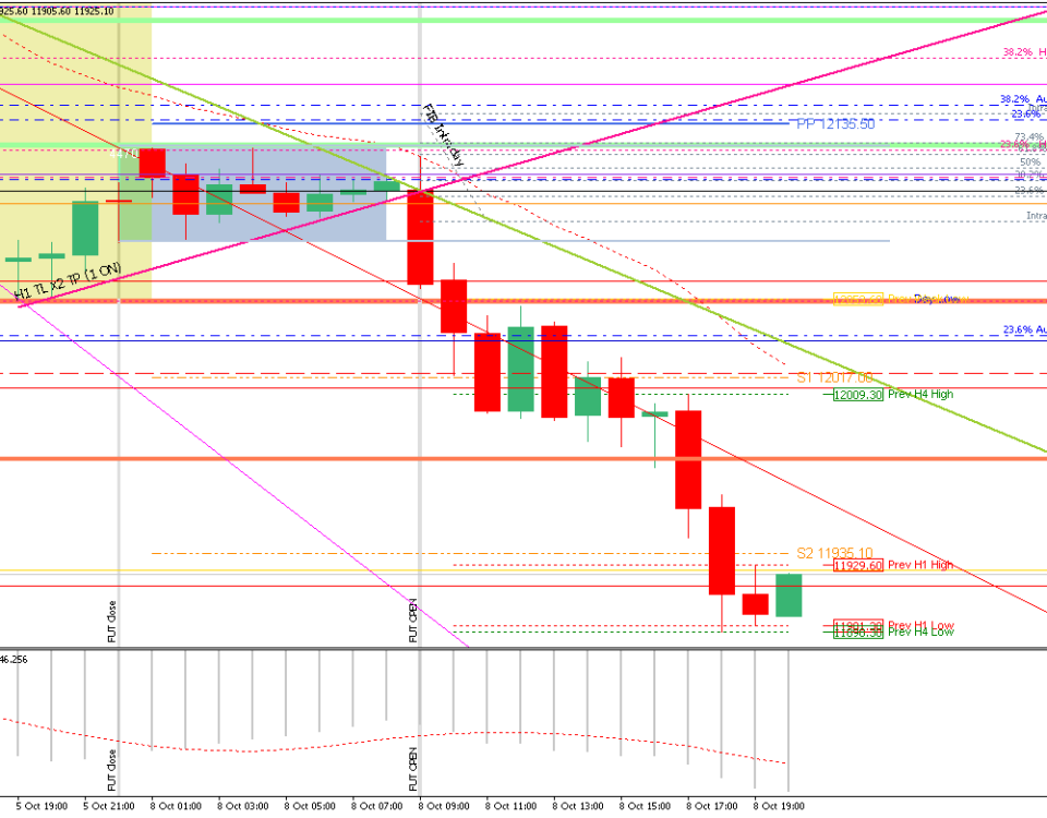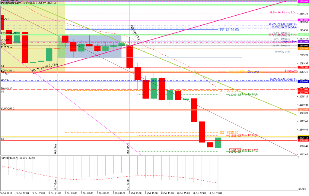 8 October 2018Published by SallyU on 8 October 2018Categories Pre-market and end of day analysis8 Oct – Support of corrective retrace breaks againWhat happened After a big down day on Friady the ON action had been corrective, providing a very clear and eays to identify TL. The only