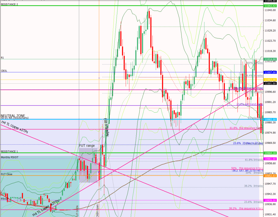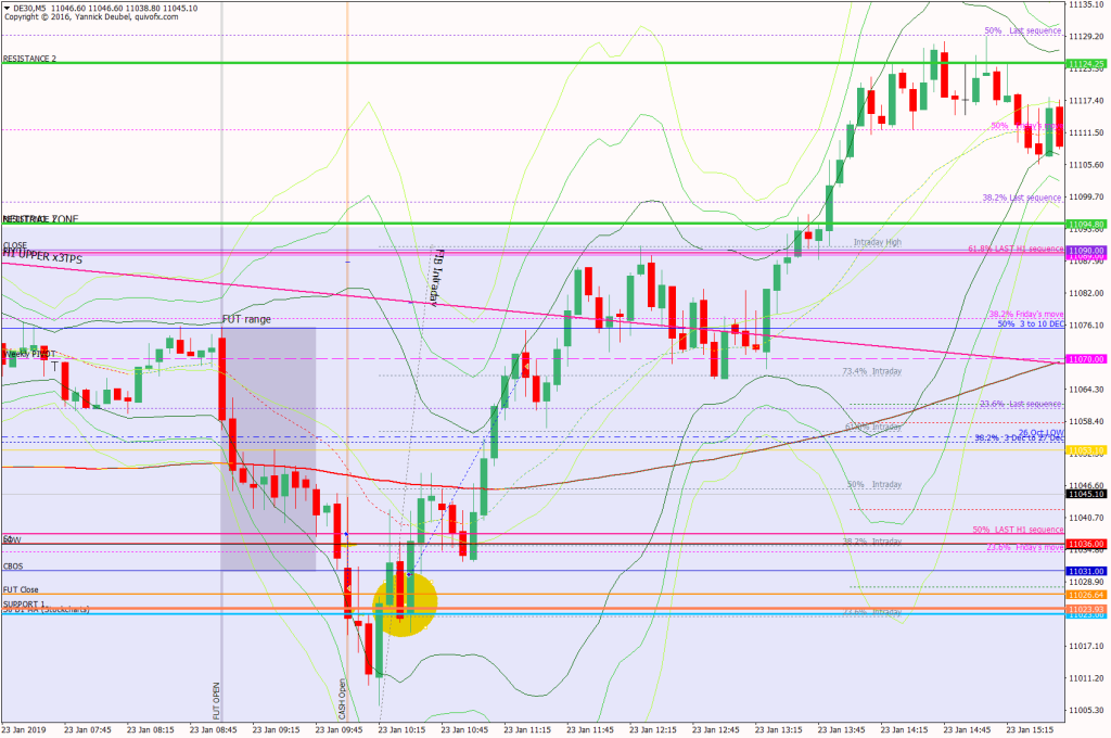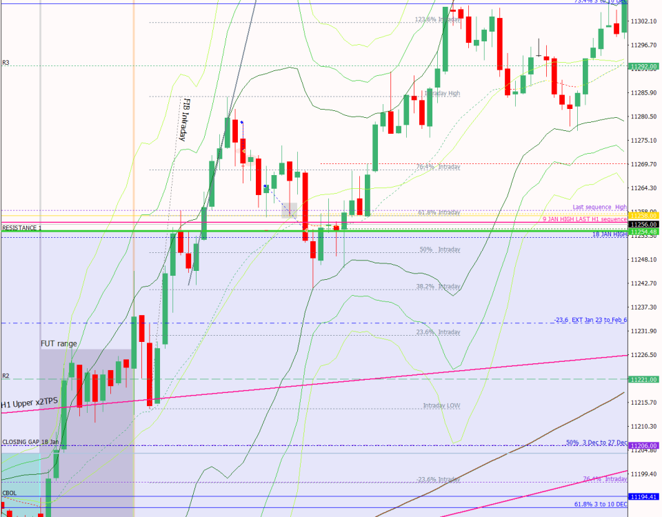 24 January 2019Published by SallyU on 24 January 2019Categories Pre-market and end of day analysis23 Jan – Rinse and repeat, closes gap plus a bit more and then sells offPre-open Scenarios The market is compressing around the level identified yesterday: the 61.8% fib of the Dec 27 to Jan 18 move. This is forming a