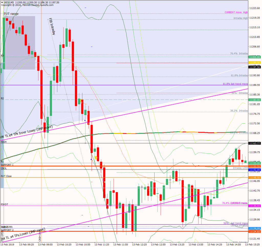 4 February 2019Published by SallyU on 4 February 2019Categories Pre-market and end of day analysis4 Feb – Breaks supporting TL but reverses straight back up againPre-open Scenarios The corrective action continues. There is s subtle downward bias counteracted by the upward sloping TL. This is the lines I will be trading