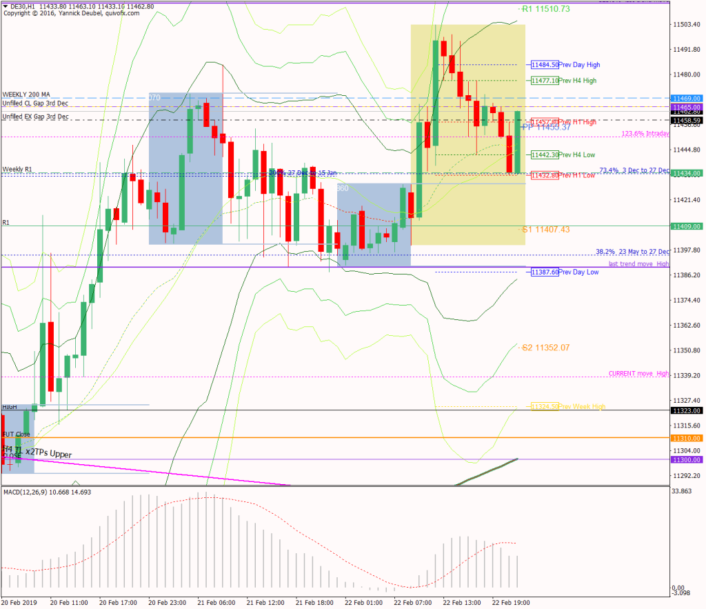 The H1 chart below shows the first and second reactions to the levels. The unfilled gaps were at the same level at the cash chart weekly 200MA so part of the reaction was gap filling but the move above the level was then an attempt to regain this critical cash chart indicator.