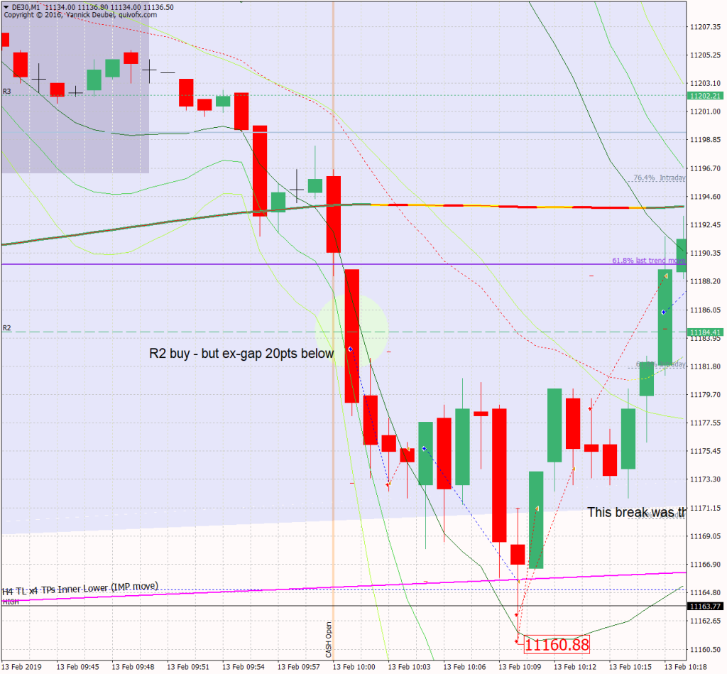 The losing trades today were R2 and then R3, and both were too close to the open to work. But in favour of using orders – a limit buy at ex-gap would have been a monster trade.