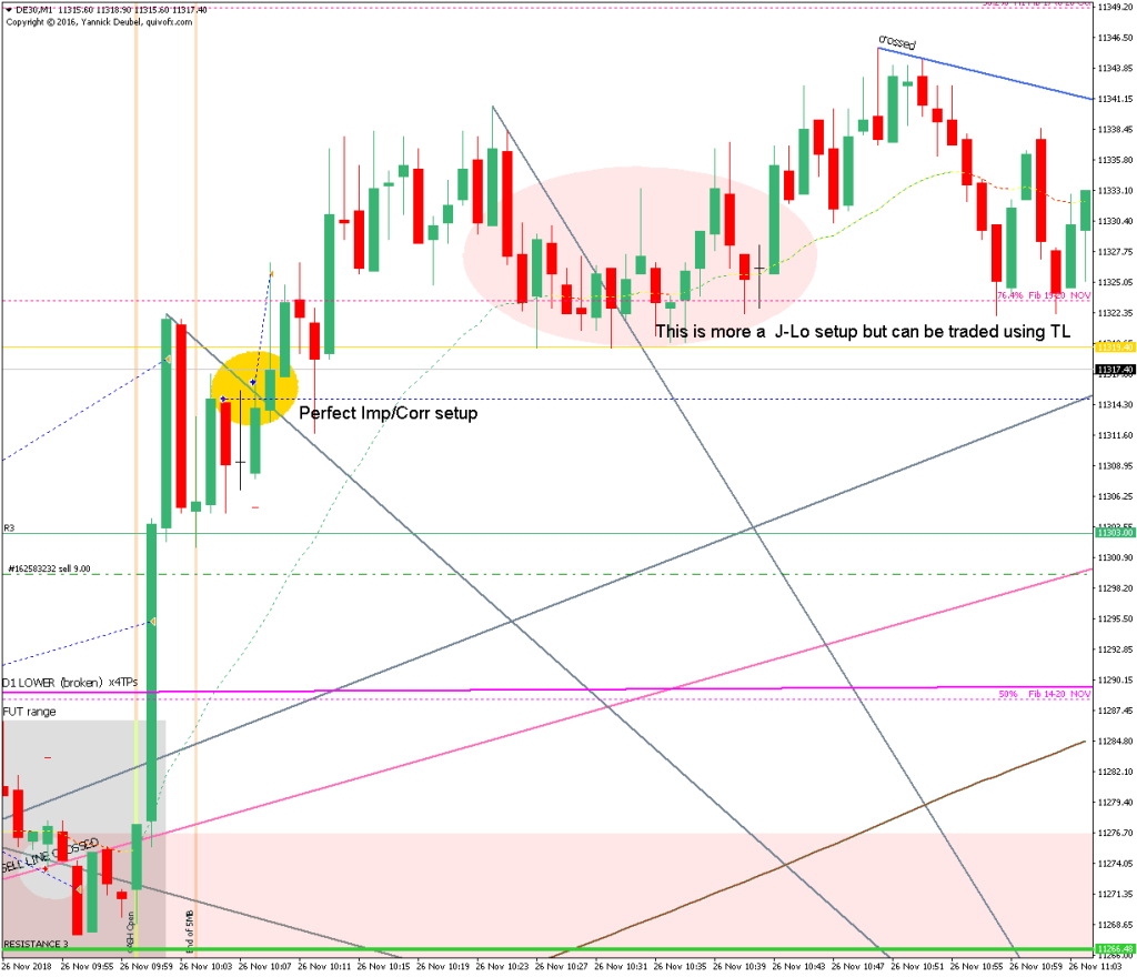 For the Imp/Corr sequence trade to work, you need the market to be trending. This trade setup in response to the impulsive buying at the open,
