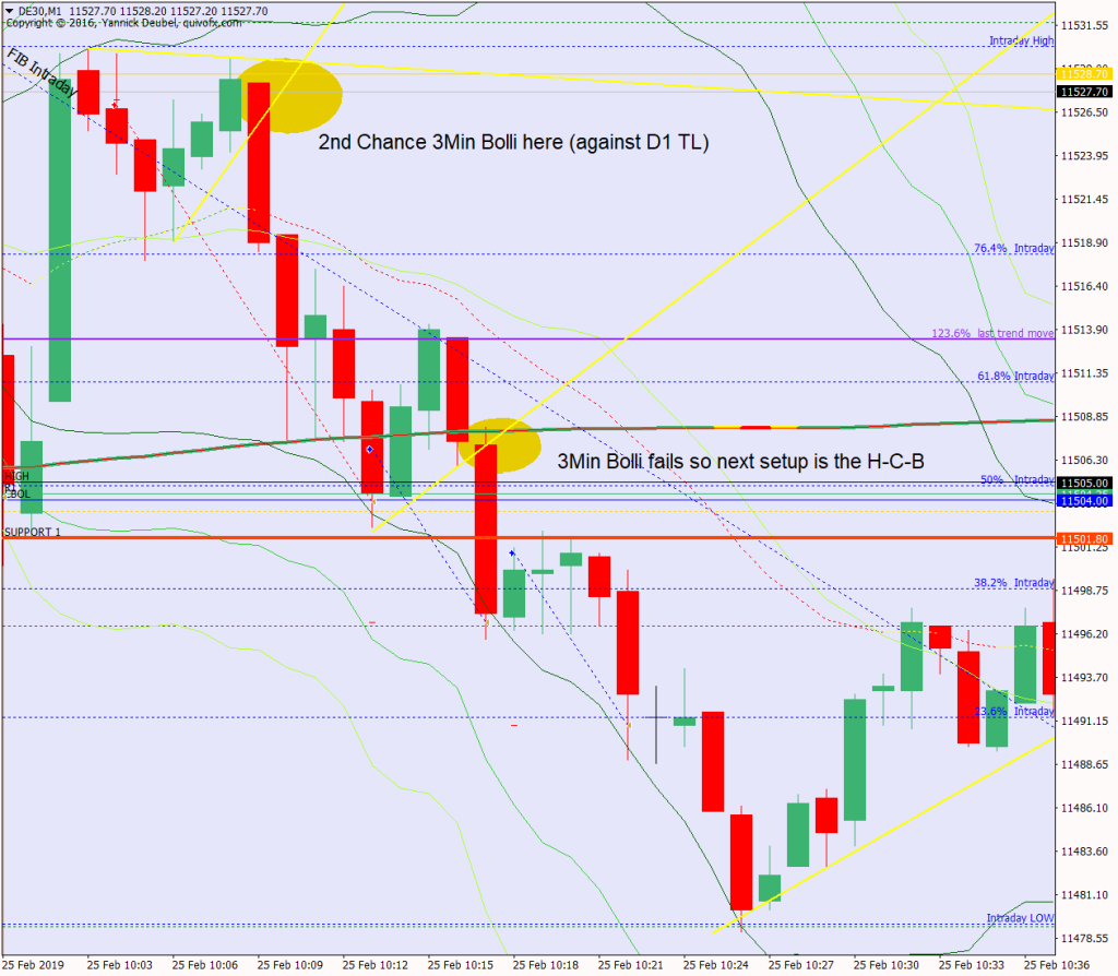 The 3Min Bolli is the least random of my trade setups and is therefore a very successful and reliable trade so it makes sense to add more risk to the trade. It’s also a good idea to add the counter trade for when the reversal fails and this is called the Hits-Corrects-Breaks TL (H-C-B) set ups.