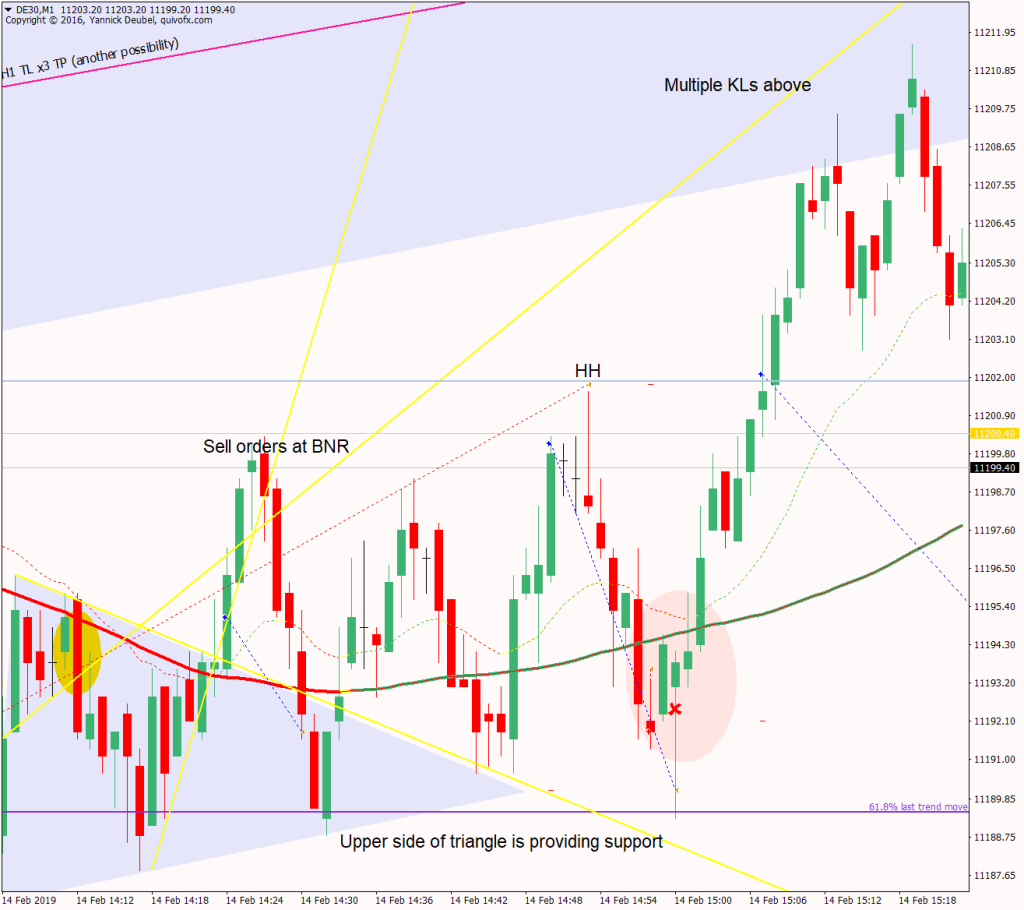 The 3Min chart is much clearer, making the triangle formation much easier to spot. I was looking for a Reverse-Triangle-Break but to the wrong side – the trade setups perfectly on the long side.