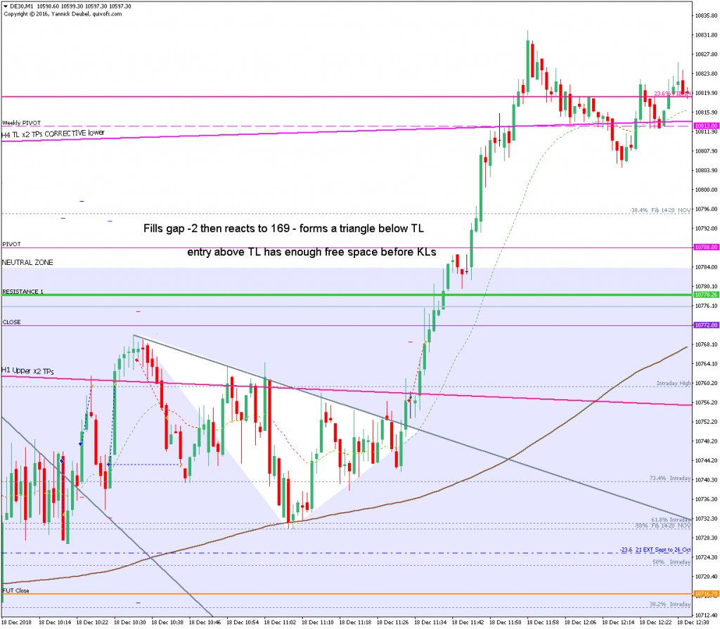 To trade triangles and compressions, it often necessary to take a trade straight into a KL or TL. This can feel awkward, but as long as there is a genuine compression around the level i.e. plenty of order flow so that those that planned to buy or sell have already had the opportunity to do so, then tradin straight into it is the right thing to do.